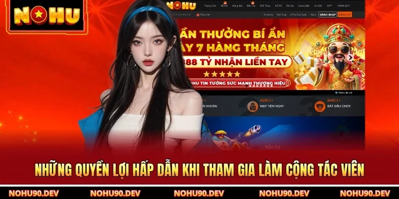 Thương hiệu NOHU90 luôn có vô vàn phần thưởng hiện kim tri ân sự cố gắng của hội viên. Đối tác chỉ cần duy trì tối thiểu 5 tài khoản cá cược hợp lệ để nhận tiền. Việc mở rộng mạng lưới người chơi giúp bạn thu về những khoản tiền thưởng hoàn toàn miễn phí. Người tham gia không cần bỏ ra bất kỳ nguồn vốn đầu tư ban đầu rủi ro nào.