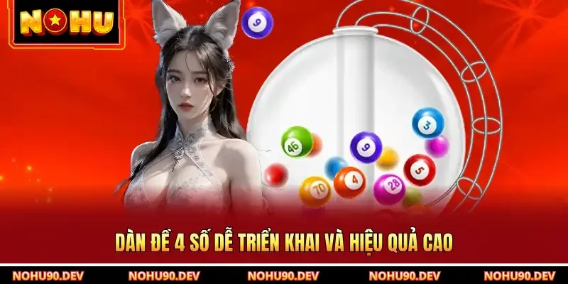 Dàn đề 4 số là một hệ thống đặt cược tinh gọn, tập trung vào chất lượng hơn là số lượng. Phương pháp đòi hỏi người chơi phải có kỹ năng phân tích dữ liệu xác suất thống kê ở trình độ cao. Thay vì rải tiền cho hàng chục con số bạn chỉ tập trung vào 4 vị trí chiến lược. Điều này giúp tỷ lệ thắng/vốn có thể đạt mức 1:17.5 hoặc cao hơn tùy theo tỷ lệ trả thưởng của nhà cái.